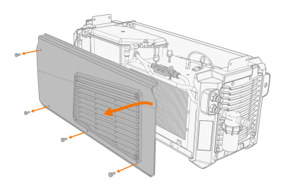 | 1. | Skru monteringsskruerne på siden af køleenheden af og fjern sidepladen. |