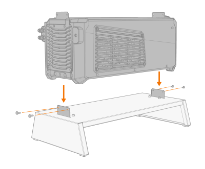 | 1. | Install the cooling unit on the stand so that the fixing plates align and go into their slots. Fix the cooling unit to the stand with two screws in the front (M5x12) and two screws in the rear (M5x12). |
