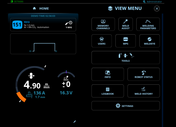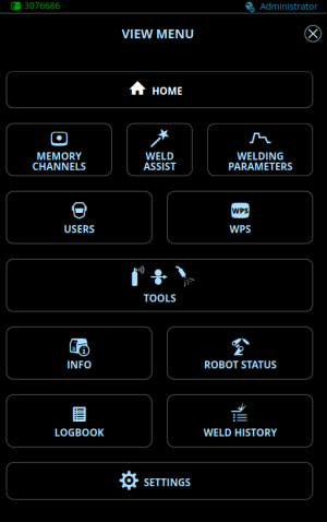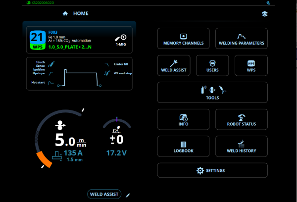AX Manager is the user interface for controlling AX MIG Welder. AX Manager can be used with a PC, tablet and mobile device. The parameters, functions and symbols are shortcuts to the corresponding views.