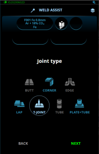 Weld Assist es una utilidad similar a un asistente, para seleccionar fácilmente los parámetros de soldadura. La utilidad guía al usuario paso a paso a través de la selección de los parámetros necesarios.