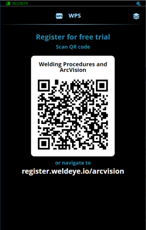 | 2. | Lue QR-koodi mobiililaitteellasi avataksesi WeldEye-verkkolinkin tai mene osoitteeseen 'https://register.weldeye.io/arcvision' internet-selaimella. |