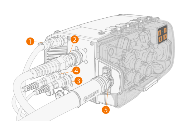 | 4. | Tocha de soldagem: Ligar o cabo de controlo (4) ao conetor. |