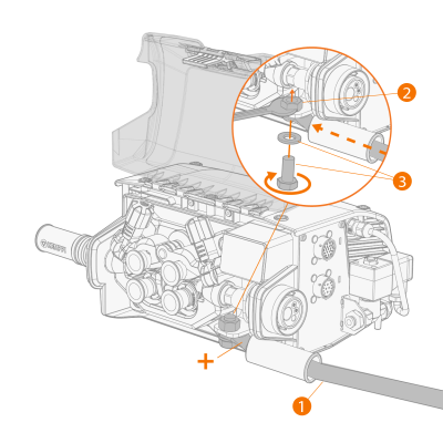 | 2. | Passar o cabo de corrente de soldadura através da manga de proteção (1) e fixar o cabo à porca de fixação (2) com o parafuso de fixação do cabo e a anilha (3). |