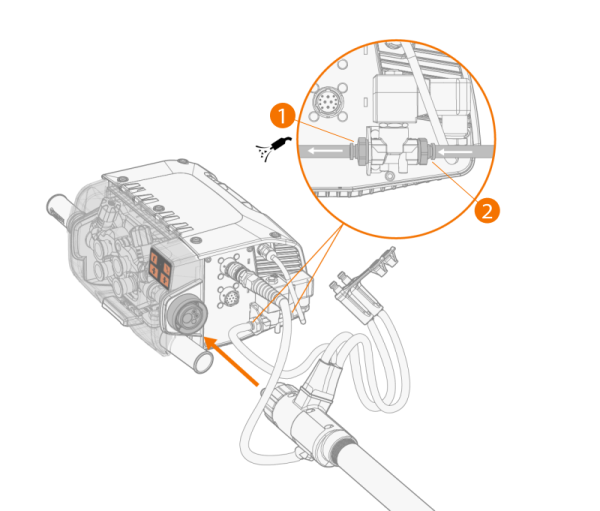 | 1. | Pressione a mangueira de gás de proteção (1) em direção ao conector até que ela trave. |