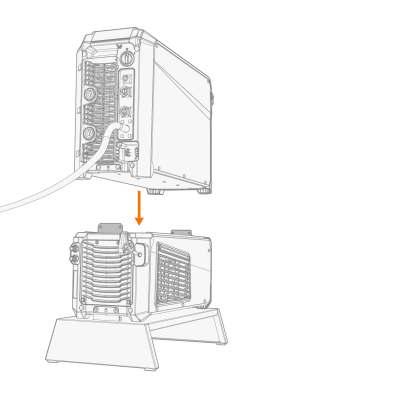 O equipamento de soldagem pode ser instalado com ou sem unidade de arrefecimento em uma base ou em subtransporte com quatro rodízios (disponível como acessório). O princípio de instalação do equipamento é o mesmo para ambos.
