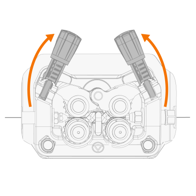 | 7. | Feche os braços de travamento do rolete de pressão. |