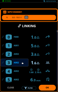 Além disso, a vinculação ou a revinculação de WPS pode ser feita diretamente na visualização do WeldEye. Para vincular ou vincular novamente o WPS: