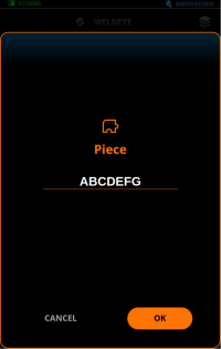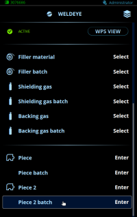 As informações da peça de trabalho também podem ser usadas e salvas no WeldEye. Se esse recurso estiver ativado nas configurações do serviço de nuvem do WeldEye, a seleção da peça de trabalho estará disponível na visualização do WeldEye.