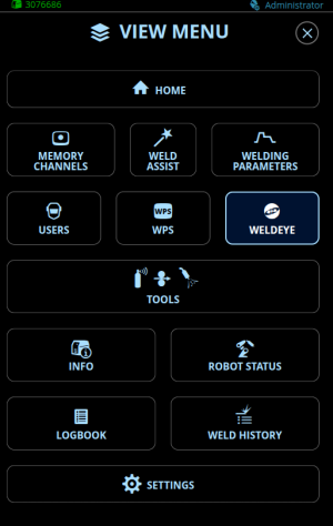 | 1. | Na visualização do WeldEye, selecione “Status”. |