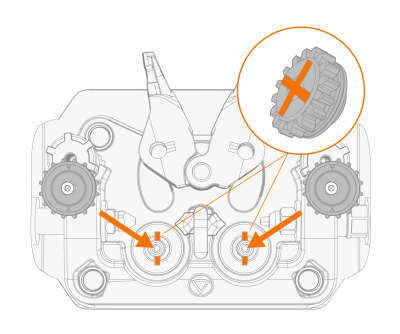 | 3. | Ta bort tryckhjulens fästtappar och matarhjulens monteringshylsor. |