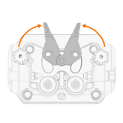 | 7. | Gå vidare till att installera tillsatsmaterialet (se Installera tråd (R500 WF EUR/EUR+)) eller stäng låsarmarna och tryckhandtagen på matarhjulen. |
