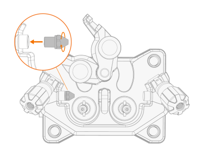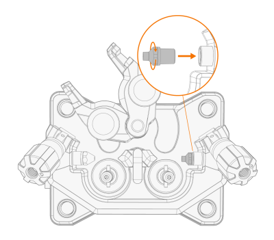 | 4. | 将锁箍转到一边,将中间导管插入其槽中。确保标记箭头指向预送丝方向。 |