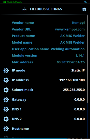 | ETG 供应商 ID | 0x00FE0001 | ETG (EtherCAT Technology Group) 分配给 Kemppi 的供应商标识符。 |