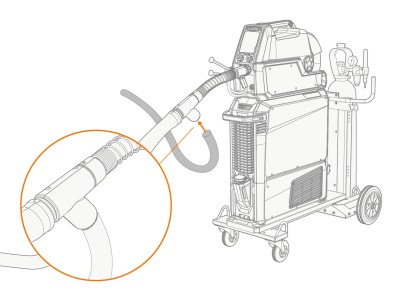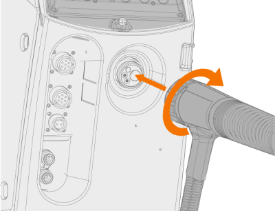 | 1. | 将焊枪连接到您的焊接设备。顺时针旋转枪环,将接头固定到位。 |