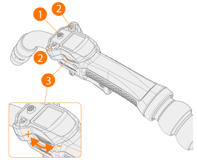 In the Settings view, you can view and adjust e.g. wire feed speed. Use the arrow buttons (2) to move between the parameters. Use the roller switch (3) to adjust the parameter value.