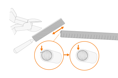 | 4. | Avance o novo conduíte do arame na mangueira do cabo até que ele pare na extremidade do pescoço da pistola. |