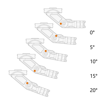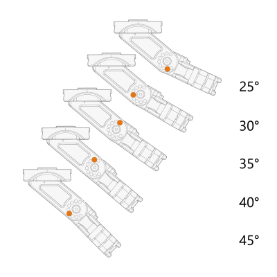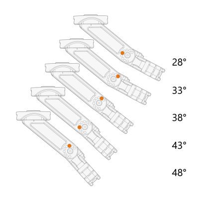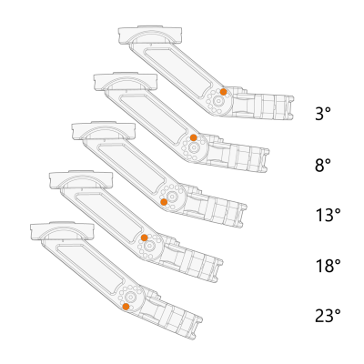 支架角度以 5° 为增量进行调整。每个增量都有一个专用的螺钉锁定位置。 |