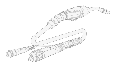 当 Flexlite GXe-C 焊枪连接到焊接小车时,焊枪上的功能按钮处于非活动状态。 |