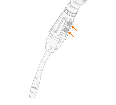 当 Flexlite GXe-C 焊枪已连接到 MagTrac F 61 焊接小车时,焊枪上的功能按钮处于非活动状态(这适用于系列 3 和系列 5 型号)。 |
