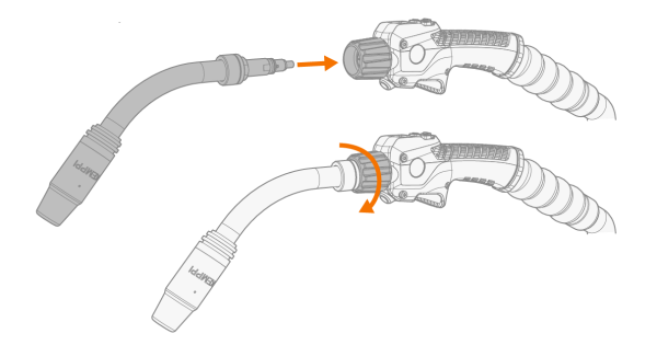 | 4. | 将装配好的焊枪颈安装到焊枪枪身。用鹅颈紧固枪环固定。 |