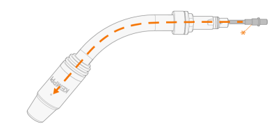 | 3. | 将新的鹅颈送丝导管插入鹅颈中,确保它完全插入并且导管末端(*)牢固地座入其外壳中。 |