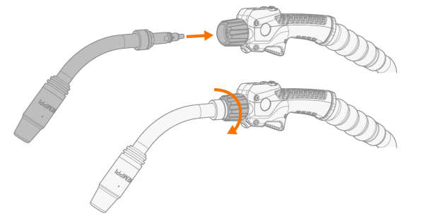 | 4. | 将装配好的焊枪颈安装到焊枪枪身。用鹅颈紧固枪环固定。 |