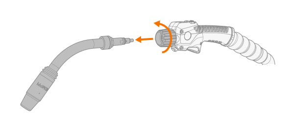 只能用手拧紧。过度拧紧和/或使用工具会损坏焊枪部件。 |