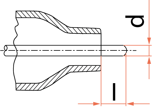Elektrodespidsens optimal frigang (I) fra gaskoppen afhænger af elektrodediameteren, strømstyrken og svejsefugens type.