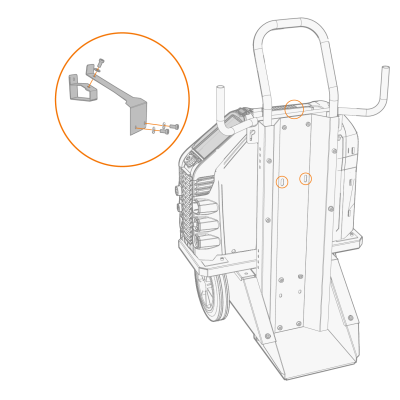 使用 2 轮推车 (T25MT),将另一个固定支架连接到电源手柄。使用提供的螺钉 (M8x16) 将支架固定到推车上。![]() |