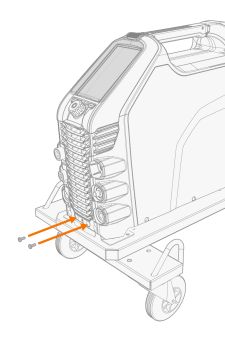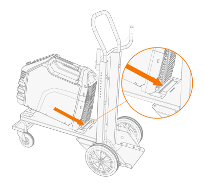 | 1. | 按照随附的说明组装移动车架。使用 T25MT 推车,将焊接设备安装到推车上之后,便可连接焊接设备固定支架 (*)。 |