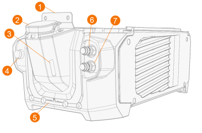 Coolant outlet connector (blue). |