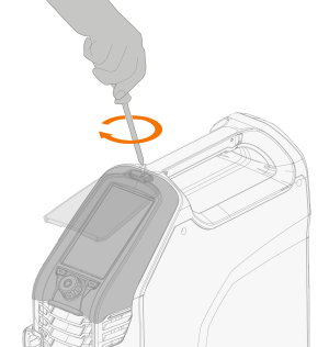 The hinged panel cover and the control panel are secured with the same screw. |