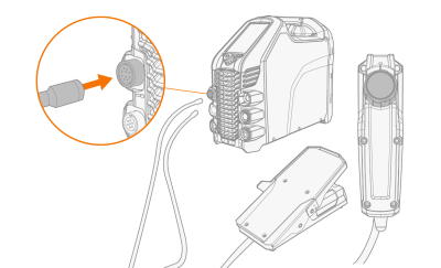 Connect the remote control cable to the power source. |