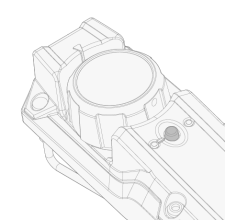 Once connected, the blue LED on the left of the connection button is lit. The green LED blinks when the battery is low. |