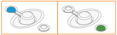Once connected, the blue LED next to the button is lit. The green LED blinks when the battery is low. |