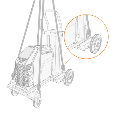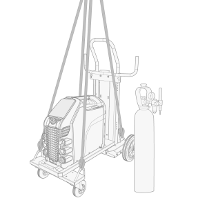 При необходимости подъема сварочного оборудования Master S 305 обращайте особое внимание на технику безопасности. Кроме того, соблюдайте действующие нормы. Сварочное оборудование Master S 305 можно поднимать с помощью механической лебедки, когда оборудование надежно установлено на тележке.