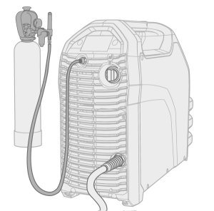 En cas d'utilisation d'un chariot de transport avec un support de bouteilles de gaz, installer d'abord la bouteille de gaz sur le chariot, puis établir les raccordements. |