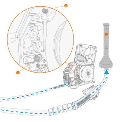 | 3. | 如果还没有,请将焊枪连接到焊接设备上(参见 连接焊枪)。 |