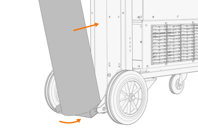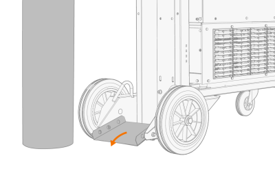 >>将气瓶向后倾斜,将推车拉向气瓶,然后将气瓶顶部向前推。旋转板有助于将气瓶升到直立位置。