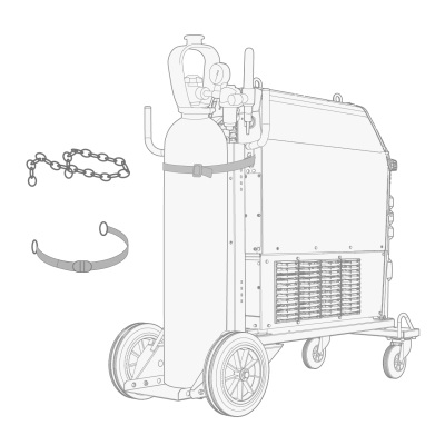 | 3. | 使用带子或链条将气瓶固定到位。使用推车中的专用固定点。 |