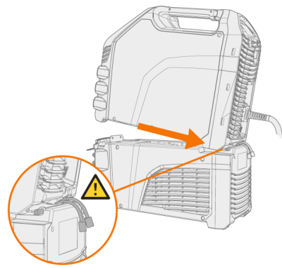 | 2. | Move the power source on top of the cooling unit so that the bar in the rear goes into the rear connection interface and lower the front onto the front connection interface. Secure the power source from the front with the screws provided. |