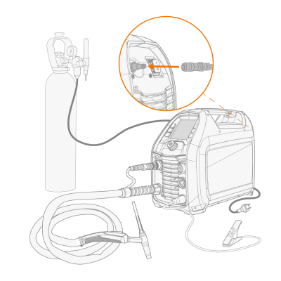 - Installez le torche de soudage sur le poste à souder avant d'installer et de tester la bouteille de gaz.