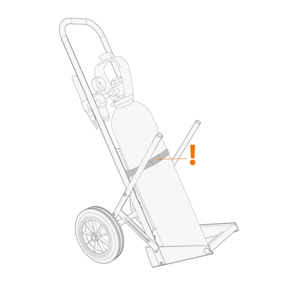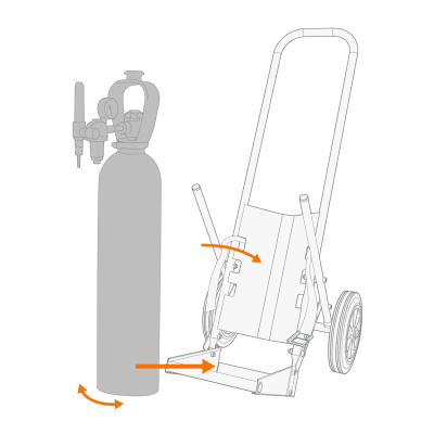 Avec un chariot de bouteille de gaz : Déplacez la bouteille de gaz sur le support de bouteilles de gaz du chariot de transport. |