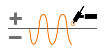 DC (jævnstrøm, negativ polaritet) TIG er en TIG-strømtilstand, hvor elektrodens polaritet er negativ i hele svejseprocessen. Negativ polaritet tillader høj indbrænding.