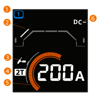 >> Bij het MMA-lassen wordt door het indrukken van de regelknop overgeschakeld van het instellen van de lasstroom naar het instellen van de boogdynamiek (voor meer informatie, zie MMA-functies en -functies).