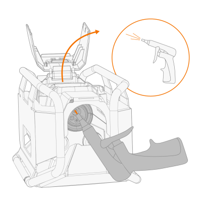 最多每更换 5 次焊丝盘就需要使用干燥的压缩空气清洁一次系统。在清洁过程中保持中继送丝机盖打开。 |