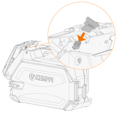 Para garantizar un funcionamiento seguro de la actualización, encienda el equipo de soldadura una vez conectada la memoria USB y sólo para que se complete el proceso de actualización. También se aconseja retirar el alambre de relleno y desconectar la antorcha de soldadura antes de la actualización. |