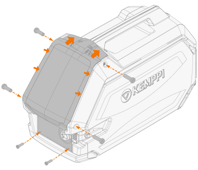 En el alimentador de alambre, suelte los seis tornillos del panel de control. |