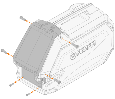 En el alimentador de alambre, suelte los cuatro tornillos del panel de control. |
