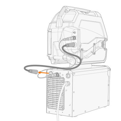 | 1. | Se já estiver conectado, desconecte temporariamente o cabo de corrente de soldagem (que vai para o alimentador de arame) da parte traseira da fonte de alimentação. |